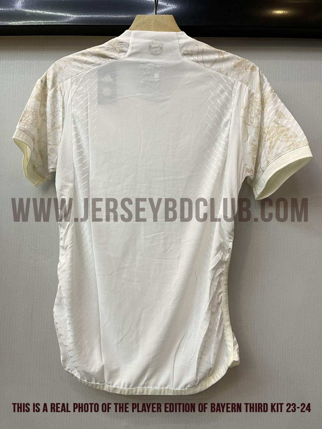 Bayern Munich Third Jersey 23/24, The gorgeous off-white and dark red color combination is the first thing that attracts the eye. This combination is not only physically stunning, but it also has significant meaning. They combine to produce a distinctive and indelible aesthetic.